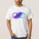 Infinity symbol with a beautiful feather painted in purple and blue bright colors on white background.