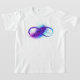 Infinity symbol with a beautiful feather painted in purple and blue bright colors on white background.