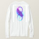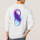 Infinity symbol with a beautiful feather painted in purple and blue bright colors on white background.