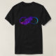 Infinity symbol with a beautiful feather painted in purple and blue bright colors on white background.