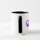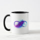 Infinity symbol with a beautiful feather painted in purple and blue bright colors on white background.