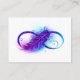 Infinity symbol with a beautiful feather painted in purple and blue bright colors on white background.