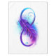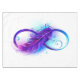 Infinity symbol with a beautiful feather painted in purple and blue bright colors on white background.