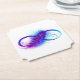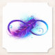 Infinity symbol with a beautiful feather painted in purple and blue bright colors on white background.