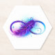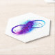 Infinity symbol with a beautiful feather painted in purple and blue bright colors on white background.