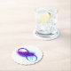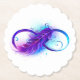 Infinity symbol with a beautiful feather painted in purple and blue bright colors on white background.