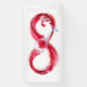 Infinity symbol of continuous stream of red wine puring into glass wine glass on white background.