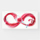 Infinity symbol of continuous stream of red wine puring into glass wine glass on white background.