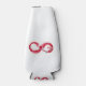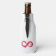Infinity symbol of continuous stream of red wine puring into glass wine glass on white background.