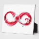 Infinity symbol of continuous stream of red wine puring into glass wine glass on white background.
