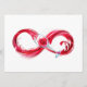 Infinity symbol of continuous stream of red wine puring into glass wine glass on white background.