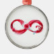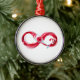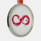 Infinity symbol of continuous stream of red wine puring into glass wine glass on white background.