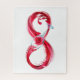 Infinity symbol of continuous stream of red wine puring into glass wine glass on white background.