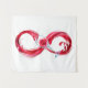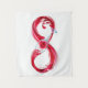 Infinity symbol of continuous stream of red wine puring into glass wine glass on white background.