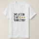Phantastisches Bitcoin-Design mit einem Bitcoin-Monster, das Dollars und Euro isst, und dem Zitat "Inflation ist nicht vorübergehend".