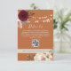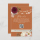 Elegante, rustikale Saitenleuchten, blumenbordeauxrote und orangefarbene Hochzeitsdetails-Karte mit QR-Code und Website.