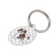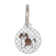 Desteis originelle Cartoon-Illustration eines niedlichen Leber- und Weißblütenhundes von Shih Tzu. Der Hintergrund weist ein Muster grauer Hundepfoten auf. Auf der anderen Seite gibt es personalisierbare Textbereiche für einen Namen und für die Telefonnummer des Besitzers.