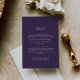 Diese rustikale Lavendel-Koordinate Pflaume Hochzeitsdetails Gehäuse Karte ist perfekt für eine Hochzeit. Das elegante und dennoch rustikale Design besticht durch ein stimmungsvolles, dunkles lila Ambiente mit einem modernen böhmischen Garten. Koordiniert mit der Rustic Lavender Collection von Fresh & Yummy Paperie.
