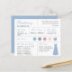 Eine Powder- und Silberüberlieferungskarte mit Informationen über das Hochzeitsdatum und den Ort der Hochzeit, die Hochzeitsfarben, das Brautparty, das Brautjungkleid und eine Bräunungsmitteilung. Der Name der Brautjungfrau und die Titel sind in einem staubblauen, eleganten Drehbuch geschrieben. In der unteren rechten Ecke ist ein blau-pulverförmiges Kleid. In der Mitte sind die Hochzeitsfarben in Kreisen. Die Farben, einschließlich der Farbe des Hochzeitskleides, können geändert werden, mit Ausnahme des Silberkreises, das sind Imitate Silberfolie.