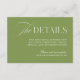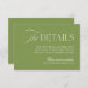 Diese elegante, grüne Hochzeitskarte eignet sich hervorragend, um Reiseinformationen, Unterkünfte und andere hilfreiche Informationen mit Ihren Gästen zu teilen. Es wurde für die Koordination mit klassischen Outdoor-, Garten- oder Hochzeiten in Urlaubsort konzipiert und bietet raffinierte Serif- und Script-Schriftart in zeitlosem Layout. Vollständig anpassbar - fügen Sie Ihre eigene Website oder Text einfach hinzu. Matches aus der Iris Wedding Collection — Klicken Sie auf den Link Sammlung auf dieser Seite, um Einladungen, Beschilderungen, Menüs und mehr zu koordinieren.