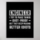 Ingenieur ich versuche, Dinge zu machen Idiot Proof, aber sie Behielt, bessere Idioten für Ingenieure zu machen, Spaß, lustige Sprüche für Ingenieure, Ingenieure, Ingenieure, Ingenieure, Ingenieure, Ingenieure, Ingenieure, Ingenieure, Ingenieurstudenten, stolze Ingenieure, Ingenieurskunst, Ingenieurskunst, Ingenieur zu machen