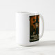 Ingwer Hexe mit ihren fliegenden Raccoons V2 Kaffee Tasse. Die Ingwer Hexe, blasser und finster, zoomte durch den spukhaften Wald auf ihrem Broomstick im Sonnenuntergang und hielt für einen Schnappschuss an, während ihre fliegenden Raccoons lautstark über Snacks, Hüte und die den Vordersitz got.