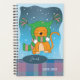 Ein blauer, orangefarbener und lila Planer mit einer Cartoon Ingwerkatze mit einem grünen Hut und Schal, der an einem kalten Wintertag im Schnee stehend ist. Personalisieren Sie es mit einem Namen und dem Jahr. Ideal für Schule , Büro oder Zuhause . © ArianeC Illustrations-Alle Rechte vorbehalten