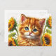 Ingwerkatze mit Sonnenblumen Wasserfarbe Postkarte