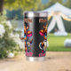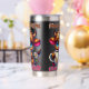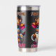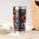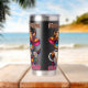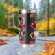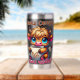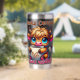 A funny and sarcastic design showcases a cute highland cow with big blue eyes, sitting contentedly in front of a vibrant daisy while holding a steaming cup of black coffee. The cow's soft brown fur adds to its charm. Bright, colorful text reads, "Inhale caffeine, exhale negativity." This delightful design is available on a variety of products, making perfect gifts for coffee enthusiasts.
