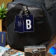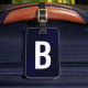 Ändern Sie einfach das Monogramm Initial auf der Vorderseite und Namen und Adresse auf der Rückseite des Navy Blue Gepäckanhängers.
