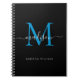 Modernes Girly Black Ocean Blue Monogram Script Name Initial Notebook