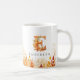 Elegante Aquarellfarben-Blätter umrahmen den Boden dieser Tasse, während der Buchstabe E eine Collage aus festlichen Fallen rot-orangen und gelben Blätter ist, Personalisieren mit einem Namen, um es einzigartig zu machen.