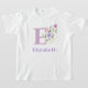 Initial & Name mit Blumendesign auf einem T - Shirt. Das Design enthält die Monogram & Name des Empfängers mit Blume in einem pastellfarbenen Aquarell-Stil. Anfangs ist der Buchstabe E. Beispiel zeigt Elisabeth. Blumendesign.