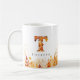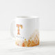 Elegante Aquarellfarben-Blätter umrahmen den Boden dieser Tasse, während der Buchstabe T eine Collage aus festlichen Fallen rot-orangen und gelben Blätter ist, Personalisieren mit einem Namen, um es einzigartig zu machen.