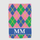 Niedliches, Personalisiertes Mit Monogramm Golfhandtuch in Blau, Grün, Rosa und Preppy-Farben.