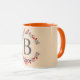 Ursprüngliches graues Monogramm mit Kranzrahmen in Blume auf BiK-Hintergrund. Elegante mit Monogramm Kaffee-Tasse, um sie zu bekommen oder als Geschenk zu geben.