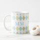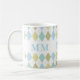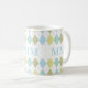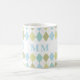 Niedliche Personalisierte Mit Monogramm Kaffeetasse mit blauen und grünen Raute.