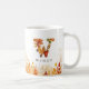 Elegante Aquarellfarben-Blätter umrahmen den Boden dieser Tasse, während der Buchstabe W eine Collage aus festlichen Fallen rot-orangen und gelben Blätter ist, Personalisieren mit einem Namen, um es einzigartig zu machen.