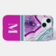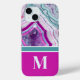 Stilvolle moderne Aquamarin Magenta Stone Initial Monogram iPhone 15 Case. Kristallwaren und Geodaten sind nach wie vor ein beliebter Trend! Dieser Druck zeichnet sich durch ein nahes Bild eines lebendigen, türkisfarbenen und lila (magenta) Geode-Steins aus, komplett mit kleinen Kristallen. Fügen Sie Ihre Initialen hinzu, um es zu Ihrem eigenen zu machen. Ein lustiger und mädchenhaft jeden Tag Fall.