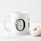 Eine personalisierte Kaffee-Tasse mit dem Buchstaben "O" Monogramm, mit dekorativen Aquarellbildern mit Blumen- und Blattbildern. Einfach mit Ihrem Namen anpassen oder ein einzigartiges Geschenk für Ihre Lieben schaffen.