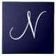 Navy Blue & White Monogram Initial N, weißer Buchstabe N mit marinebasischem Hintergrund