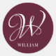 Initial Personalisiert Elegant Burgundy Monogram Runder Aufkleber