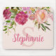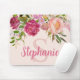 Mousepad mit wunderschönen rosa, rosafarbenen Blume und Grün. Personalisiert durch Ihr Monogramm/Initial und Ihren Namen.