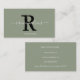 Elegante Monogram Script Name Initial Sage Green Business Card