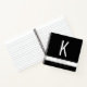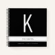 Personalisiertes Notizbuch mit schwarz-weißem Cover mit einem großen, modernen Monogramm-Anfangsbuchstaben, -namen und Notizbuch- oder Zeitschriftentitel oder Thema, auf der Vorderseite in schicken, modernen Schriftart bedruckt.
