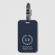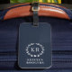 Ein mit Monogramm berufliches, modernes und minimalistisches marineblau-weißes Gepäckstück, das perfekt für jeden Jetset geeignet ist. Das elegante Design besteht aus zwei Monogramm-Buchstaben, die von einem klassischen Lorbeer mit Herz umschlossen sind und ihm einen raffinierten Look verleihen. Personalisieren Sie es mit Ihrem eigenen Monogramm und einer anpassbaren Namensvorlage für eine einfache Identifizierung, sodass Ihr Gepäck bei der Gepäckausgabe immer leicht identifizierbar ist. Dieses Gepäckanhänger ist das perfekte Accessoire für jeden beruflichen Reisenden. Es wurde entworfen, um eine Touch von skurriler Eleganz zu Ihrer Reise hinzuzufügen. Machen Sie mit diesem vielseitigen und trendigen Gepäckanhänger eine Aussage und reisen Sie stilvoll.