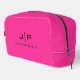 Maßgeschneidertes, modernes Monogramm einfaches Template für den Anfangsbuchstaben Hochladen von Bilddruckaccessoires / Taschen & Wallets / Kosmetische und Toilettentaschen / Pink Solid Color Dopp Kit.