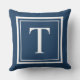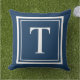 Stilvolles Kissen mit Akzent im Freien mit einem Serifenmonogramm, den Sie mit Ihrem Vor- oder Nachnamen individuell gestalten können, gerahmt durch ein einfaches Doppelquadrat in weißer Farbe mit marineblauer Hintergrundfarbe. Sie können die Hintergrundfarbe anpassen, um sie mit der Wohngestaltung abzustimmen.