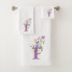 Das Design enthält Monogram plus Blume in einem Blumendesign. Anfangs ist der Buchstabe F. Persönliches Handtuch Set.