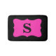 Fügen Sie Ihrer Wohngestaltung einen farbenfrohen, stilvollen und trendigen Dekorationsakzent mit diesem individuell angepassten Teppich zu Ihrem Monogramm-Initial hinzu. Die Matte ist schwarz mit einem heißen fuchsienrosa Serpentinemblem, um sie mit Ihrem Monogramm zu personalisieren. Passen Sie Ihre Initialen in der Mitte für einen stilvollen und trendigen Teppich an. Vollständig anpassbar, um einen raffinierten Akzent auf Ihre Dekoration zu machen. Mehrere Farben sind mit diesem Design verfügbar.